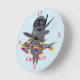 The clock did not take as long to arrive as I thought it might and was extremely well packaged. I didn't do the measurements so I didn't realize it is a little smaller than the average clock but that does not matter (just make sure you check if that's important to you).It is really nifty! It seems very solid and well made not flimsy at all. It has been going well and has kept good time in its few weeks on my wall. Nice product. Gets noticed too! Nicer in real life than the picture but true to the picture