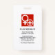 A simple white and grey shades block column design. A dark grey frame encapsulates the photo placard. This placard can have photos with a size of 1,000 pix x 1,200 pix. The grey cover helps with photos that have a white background. Just below the photo lies your prestigious name and job title. Southwards to the base of the badge, are the ID Number and business name.
