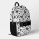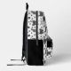This cute backpack has a pattern of grey silhouette cats in various poses. Along with the cat images are black paw prints. Everything is shown on a white background, except for a black banner on the pocket that contains your custom name in white. If you prefer, you may remove the name by blanking out the text field. Perfect for any cat lover!