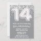 Grey and silver 14th birthday party invitation 14 birthday party invitation for a boy or girl with modern script writing and fun foil balloons.