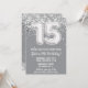 Grey and silver 15th birthday party invitation 15 birthday party invitation for a boy or girl with modern script writing and fun foil balloons.