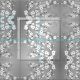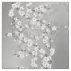 Elegant white cherry blossoms on a silver grey background.
