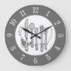 Grey Silverware White Napkin White Number on Grey Large Clock