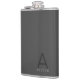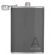 Modern elegant and understated masculine monogram initial and custom name on a dark grey personalised flask in a classic minimal, professional-looking sans-serif font for a simple and professional and modern look.