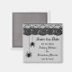 Dainty spiders and a photo illustrated lace border accent this save the date magnet; that is perfect for the Halloween Wedding.