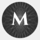 Grey string waves black monogram classic round sticker
