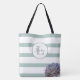 Grey Stripe and Succulent Monogrammed Personalised Tote Bag