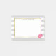 These handy notes feature a chic pastel grey and white stripe background, faux gold border, and a watercolor peony flower illustration in vibrant pink. Customise with a monogram, name or text of your choice in modern black lettering.