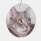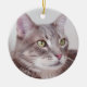 Christmas ornament with 21 yr old grey tabby cat named M cat because of the M on his forehead.