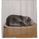 Grey tabby cat sleeping on cardboard box shower curtains. Beautiful cosy cat photograph digitally painted. For cat lovers. Cosy home decor item.
