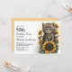 Cute grey tabby cat/kitten with sunflowers 50th birthday party invitation for women. This card can be designed for anyone of any age. Contact me for assistance with your customisation or to request additional matching or coordinating products for your celebration.