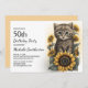 Grey Tabby Kitten Cat Sunflowers 50th Birthday Invitation
