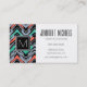 Grey, Teal, And Coral Hand Drawn Chevron Pattern Business Card