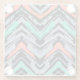 Grey, Teal, And Coral Hand Drawn Chevron Pattern Glass Coaster