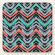 Grey, Teal, And Coral Hand Drawn Chevron Pattern Square Paper Coaster