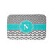 Show off your style in a fun way with this grey and teal chevron monogram bathmat.