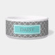 Grey Teal Quatrefoil Custom Name Dog Bowl