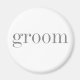 Grey text Groom design T-shirts, mugs, mousepads, tote bags, cards, buttons, and more to match every member of the wedding party and family members. The guy's design is simple grey text, the girls has small red hearts.