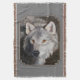 Grey Timber Wolf Face Portrait Throw Blanket