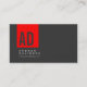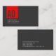 Grey Trendy Red Stripe Monogram Business Card
