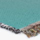 A quality printed throw has its advantages. This is a much finer weave throw than its loopier cousins, and though lighter, it is worth the investment for custom room accessorizing. The back is much prettier than the typical brown, and the fringe on the long sides very vivid, the selvage nicely done. Before photographing, I washed the throw in cold water, delicate, with a thicker woven throw the same size. On tumble dry low, this throw was dry in half the time as the other. This is a very practical quality if you use throws for furniture covers or to wrap up in frequently. The sleekness of the fabric makes it a great layer for accenting or protecting without the feeling of sitting on too much stuff. Perfect for napping or when you feel a light chill coming on. The color printing is beautiful and on this fabric, matched the design and color of my Photoshop image. This is an advantage for blending room fabrics and colors. The fringe on the short sides prints the colors from the design image and therefore varies from the side fringe. I streaked a white fractal line through the plaid pattern to give the illusion of weaving. This printed as crisp as an illusory thread, and put some white in the short side fringe, showing another advantage of print vs loomed- for artistic purposes, line lines, detail, and color integrity can be planned and preserved. My loomed throws have color limitations and more of a needlepoint texture. Print throws reproduce an exact image. The throw felt a little stiff straight out of the package, but this went away in the first delicate wash. Of course I searched the wash water for ink or bleeding and there was none.