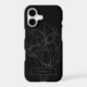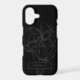 This phone case features a line art drawing of tulips in grey on a black background with and a personalized name. Original art from Dogwood & Thistle.