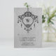 Elegant Vintage Chandelier Response Card featuring a stylish hanging chandelier on a grey antique look background. The chic elegance of this design makes it perfect for a sophisticated wedding. Easy to customise, add your own wedding details and initial. Click "Customise It" to find more personalisation options.