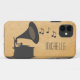 Quirky and unique Vintage Gramophone Case-Mate iPhone 5 Barely There Case in dark grey featuring a silhouette of an old-fashioned gramophone and a cascade of musical notes on a digital art rendered paper background. This chic iPhone case will protect your phone with a dash of vintage flair and is perfect for any music lover. Easy to customise, simply personalise with the text of your choosing. Click on the "Customise It" button to find additional personalisation options.