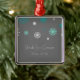 Winter Wedding custom name and date ornament in elegant and modern dark charcoal grey, turquoise aqua teal blue and white festive snowflakes pattern. A stylish christmas gift for family and friends or to decorate your christmas tree or home for the holidays. The perfect way to remember your winter wedding day.