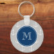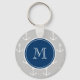 Grey White Anchors Pattern, Navy Blue Monogram Key Ring