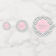 Grey and white chevron pattern with pastel pink accent baby shower table confetti. Grey and white zigzag and in the middle there is a pastel pink quatrefoil with your custom text.