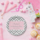 Grey, White and Pastel Pink Chevron Birthday Paper Plate