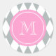 Grey White Harlequin Pattern, Pink Monogram Classic Round Sticker