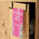 Grey White Lattice Pattern Pink Monogram Tea Towel