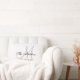 Personalised grey and white monogrammed pillow with your family's last name and wedding date in a script font overlay design on a white background. Elke Clarke© Available at www.zazzle.com/monogramgallery. Makes a great gift for newly weds or a family. Great trendy, elegant accessory for your bedroom, favourite chair, as fun home decor in your family room or formal decorative addition to your living room. Other styles and colours available in our shop.