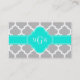 Grey White Moroccan #5 Brt Aqua 3 Initial Monogram Business Card