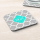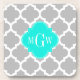 Grey White Moroccan #5 Brt Aqua 3 Initial Monogram Coaster