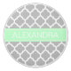 Grey and White Moroccan Quatrefoil Trellis Pattern #5, Mint Ribbon Name Monogram Label