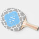 Grey White Moroccan #5 Sky Blue 3 Initial Monogram Ping Pong Paddle