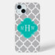 Grey White Moroccan #5 Teal 3 Initial Monogram Case-Mate iPhone Case