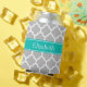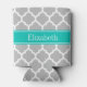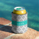 Grey White Moroccan #5 Teal Name Monogram Can Cooler