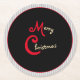 Grey White Pinstripes Black with Red Bow Round Paper Coaster