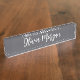 Elegant desk nameplate features your name, title, or choice of personalisation in white hand scripted cursive lettering on a neutral grey background.