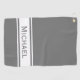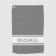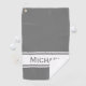 Play golf in style with this personalised golf towel. This design has a solid grey background colour with white stripes and a modern font. This is a terrific gift for men, women, and junior golfers playing in golf tournaments or recreational golf. It's also a lovely gift for golf coaches and instructors. The name and colour can be customised in the personalisation options. Change colours to your favourite combination or match your golf bag or team colours.