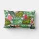Grey and White Striped Reversible Tropical Leaves Lumbar Throw Pillow
