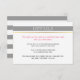 Grey white stripes gold, hot pink wedding details insert card. This modern wedding details card showcases a grey stripe on the upper and your wording in a white band with a gold stripe. The text is in hot pink and black. A grey and white striped pattern covers the back of the card.