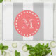 Grey White Stripes Pattern, Coral Monogram Tea Towel