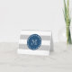 Grey White Stripes Pattern, Navy Blue Monogram Note Card