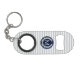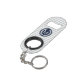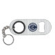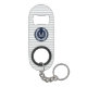 Modern light grey and white striped pattern with custom laurel wreath logo monogram in navy blue to add your own initial, name or text - personalised mini keychain bottle openers.