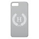 Grey White Wheat Laurel Wreath Initial Monogram Case-Mate iPhone Case